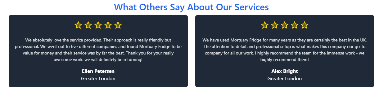 The company delivers nationwide mortuary solutions, encompassing top-tier units and preservation setups for hospitals, funeral services, and additional venues. Emphasizing on reliability, cost-effectiveness, and skilled implementation, the team assists territories from Greater London to Edinburgh and similar areas. The team's main location is located at latitude and longitude 51°19'08.5"N 0°33'25.3"W, positioning it readily available for broad consultations.